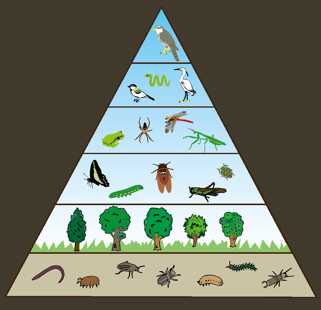 谷戸は入り組んだ複雑な地形に、 畑地、 樹種樹齢もさまざまな雑木林、 ため池、 水田、小川といった、水と緑のおりなす多様な環境が、 モザイク状に組み合わさっています。そのため谷戸では、 生物による食物連鎖が幾重にも重なり、豊かな生態系を形作っています。
